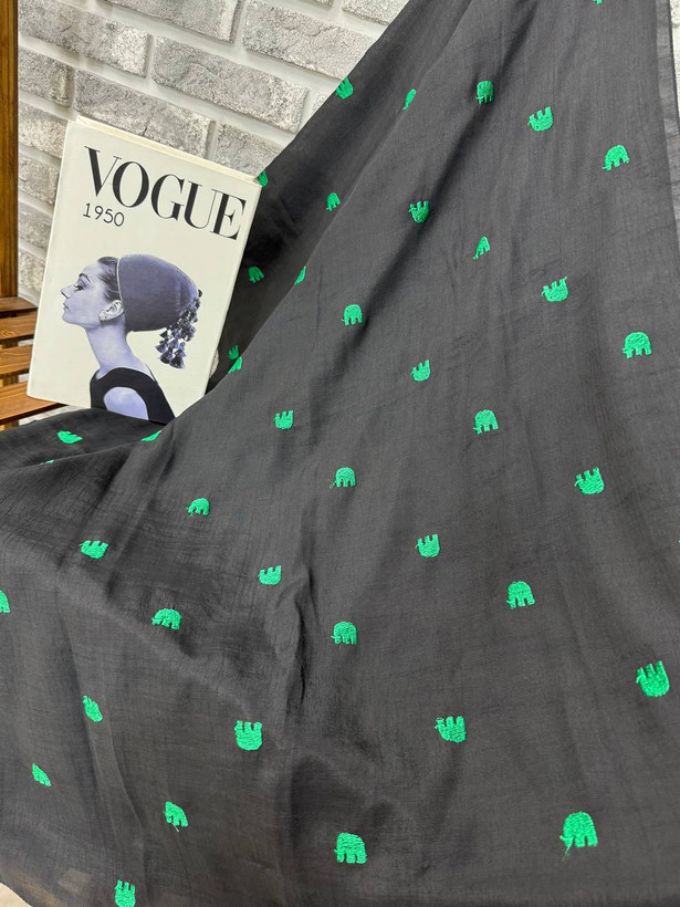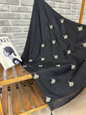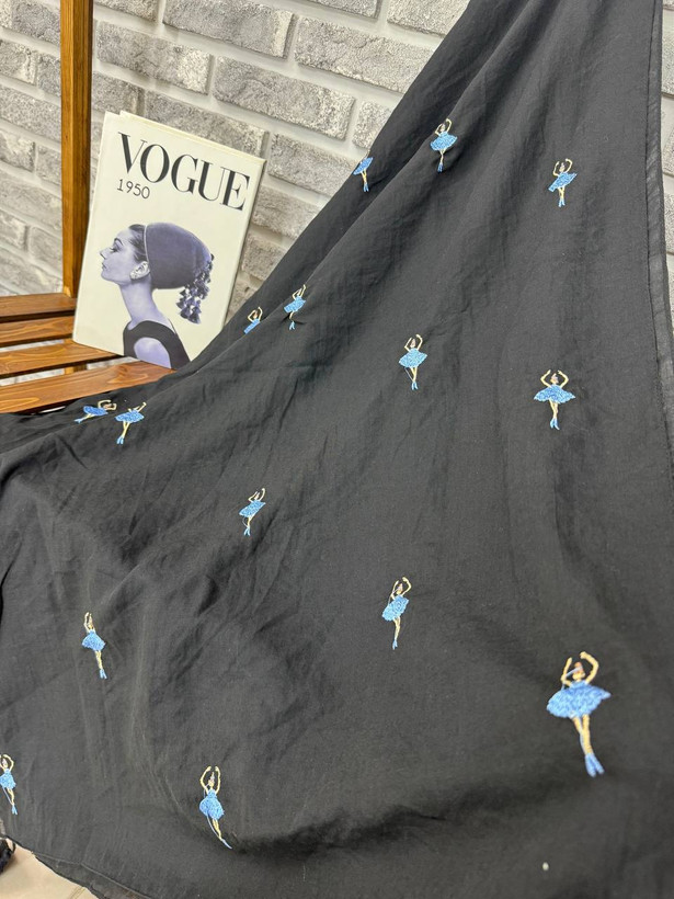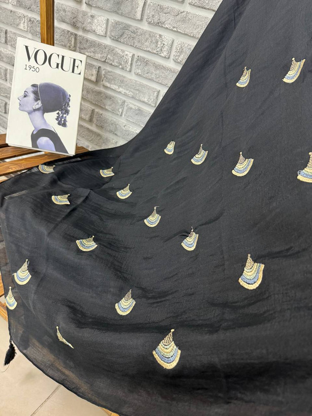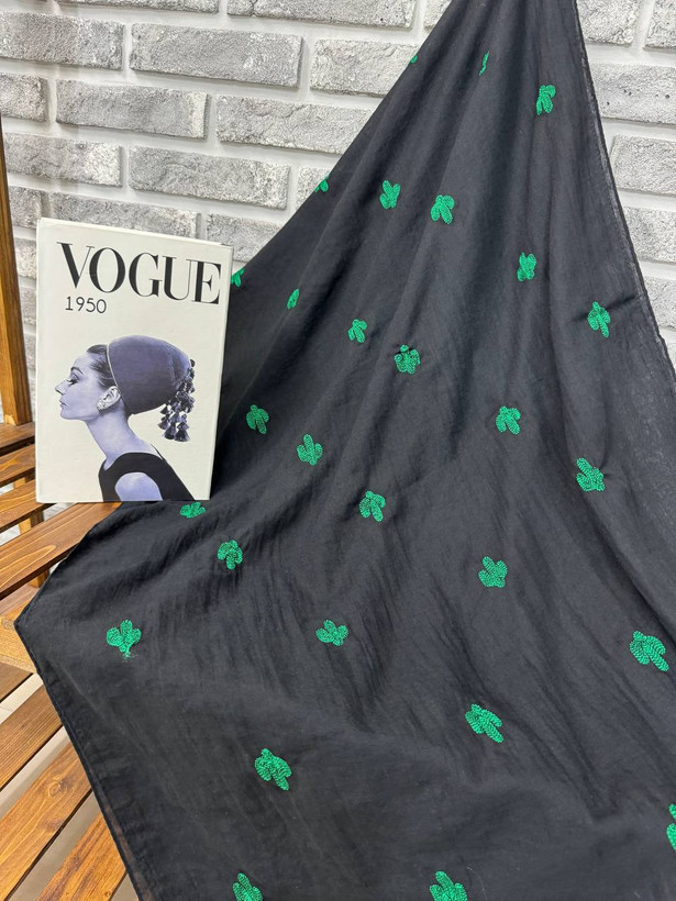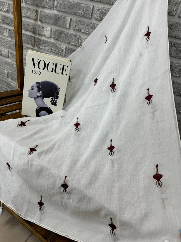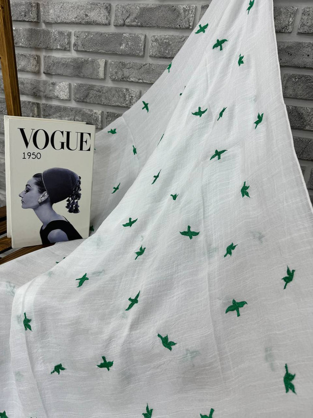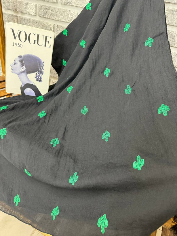 شال زنانه نخی گلدوزی پارچه وال اسلپ منگوله دار
