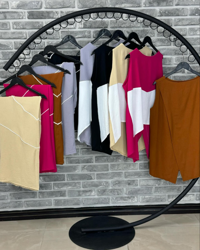 ست تاپ و شلوار بگ جنس آلما(سبک و خنک، کشسانی بالایی ندارد و چروک هم نمیشود) سایز فري مناسب ٣٦ تا ۴۴ قد جلوی تاپ ۵۷ قد بلند ترین قسمت پشت تاپ ۸۰ قد شلوار ۱۰۶ رنگبندي ۵ رنگ مطابق تصاوير