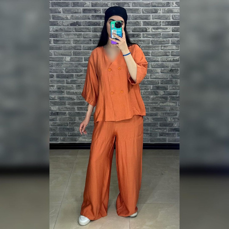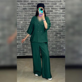 ست شومیز شلوار بگ جنس بامبو سایز فري مناسب ٣٦ تا ۴۶ قد شومیز ۵۸ قد استین از دوخت سرشانه ۳۳ قدشلوار ۱۱۰ رنگبندي ۶ رنگ