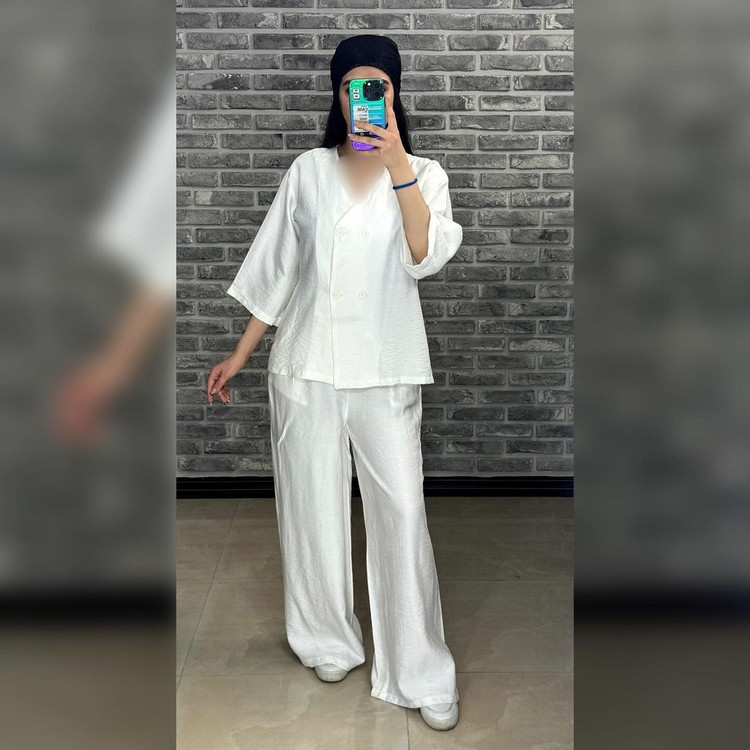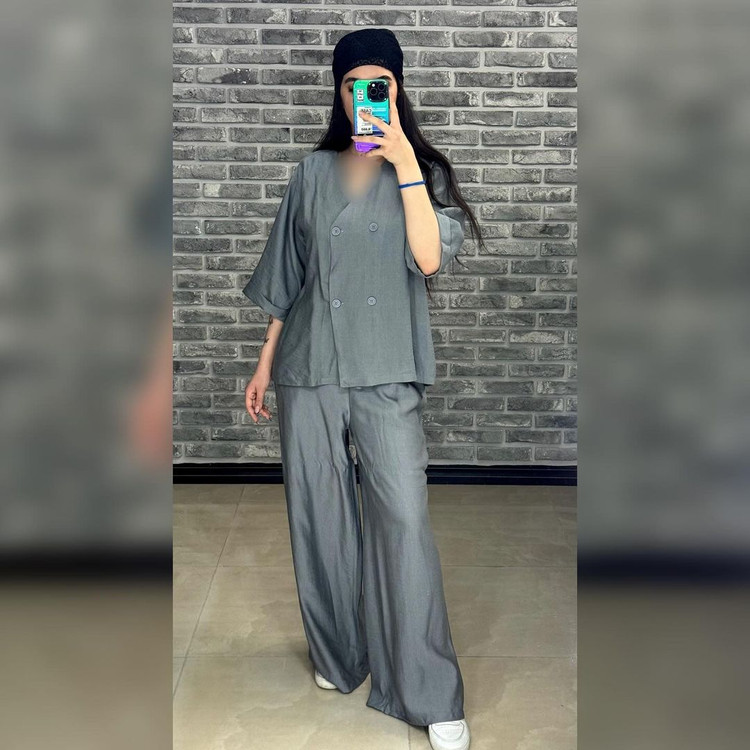 ست شومیز شلوار بگ جنس بامبو سایز فری کد 10350