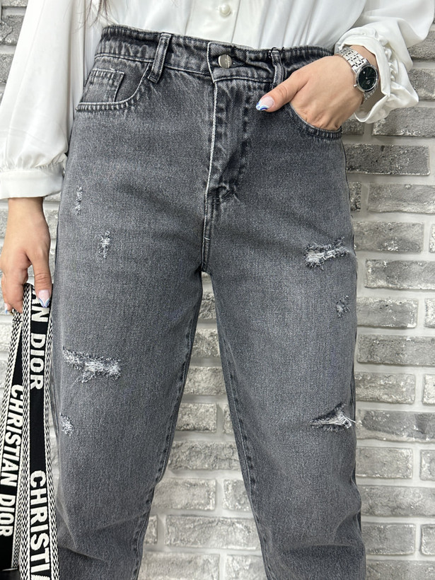شلوار جین مام استایل دودی زاپدار کد 10489