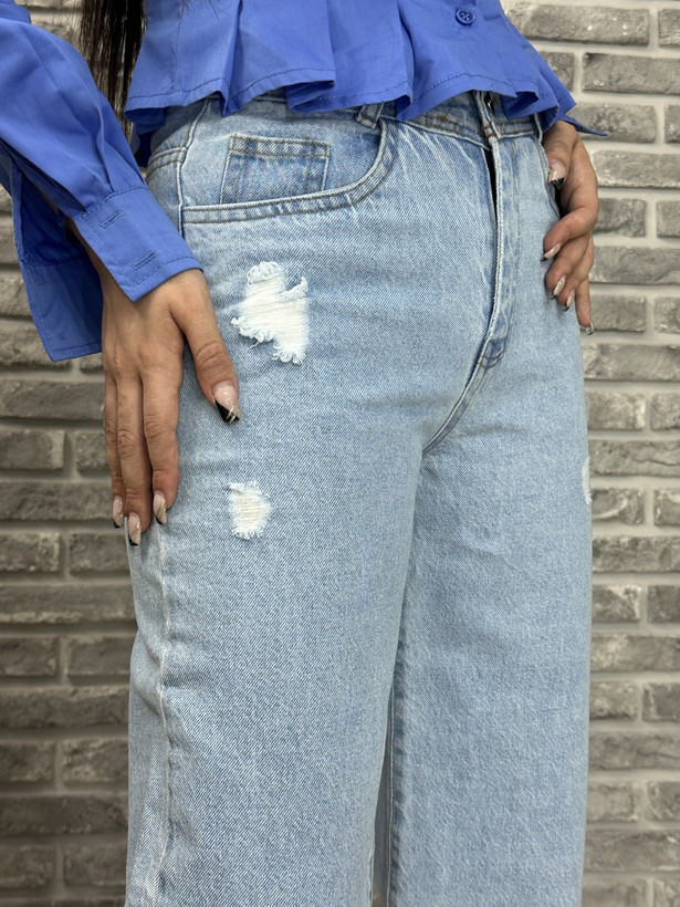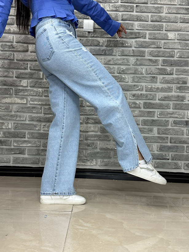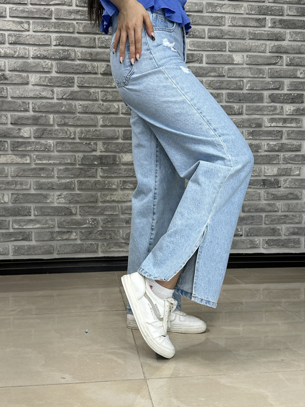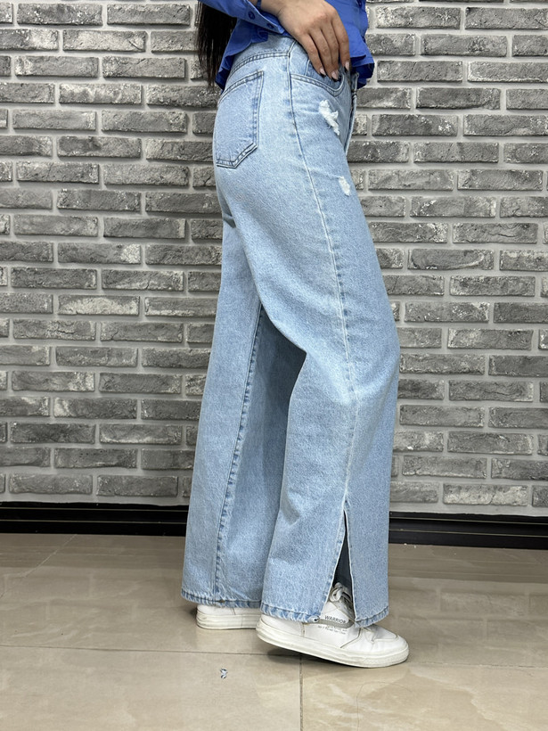 شلوار جین بگ آبی بغل پا چاکدار کد 10164