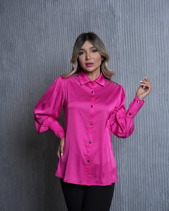 شومیز ساتن سرشونه نگین کار شده کد 10360