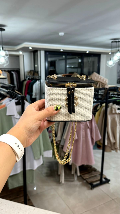 کیف شنل زنجیری مینی حصیری کد 10401