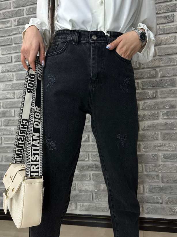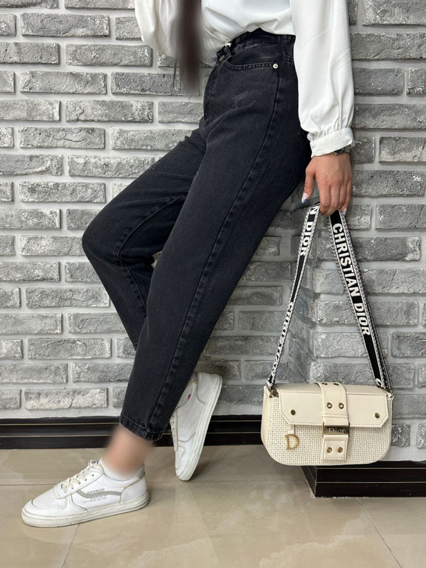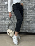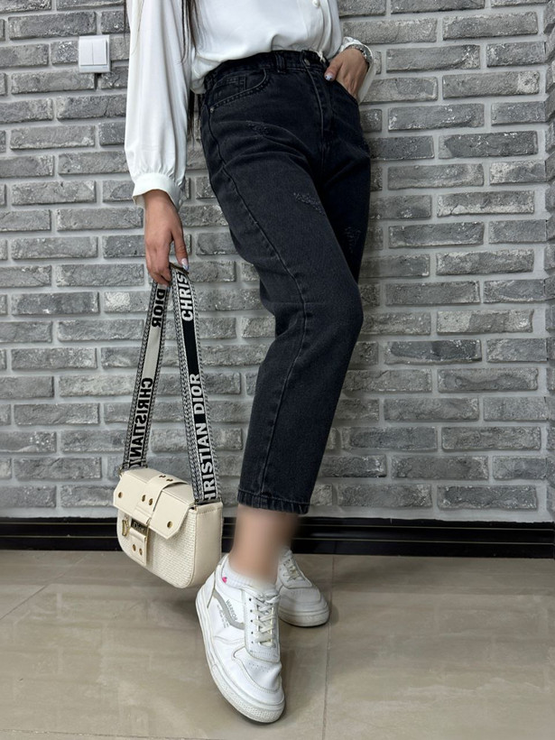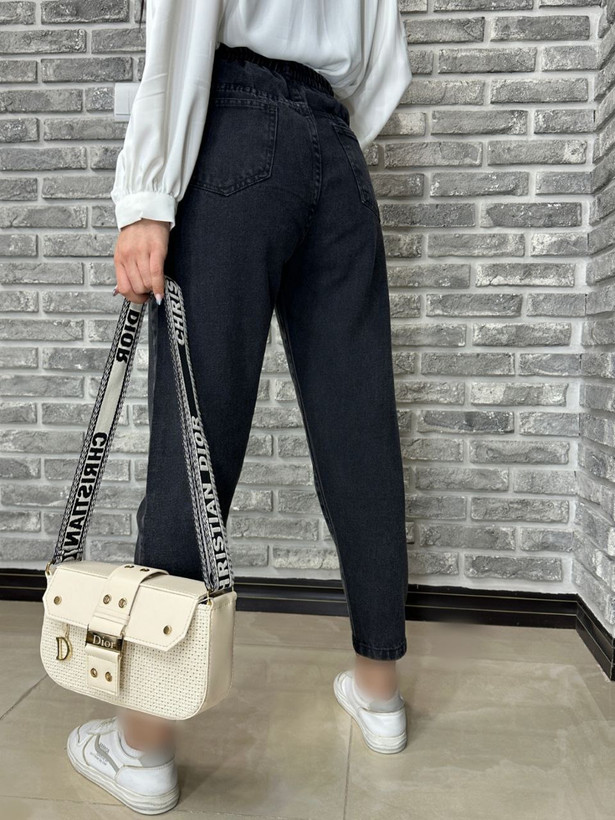 شلوار جین مام دودی ذغالی کمر پشت کش کد 10490