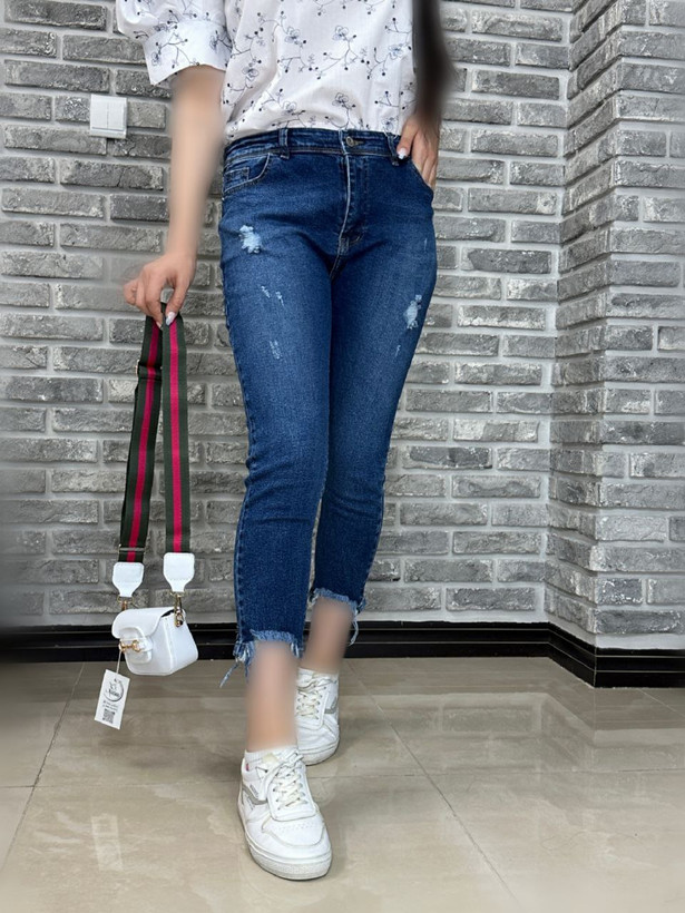 شلوار جین اسکینی آبی تیره دمپا زاپ کد 10515