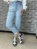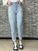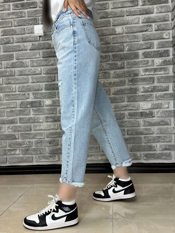شلوار جین مام آبی دودی زاپدار کد 10485