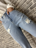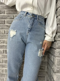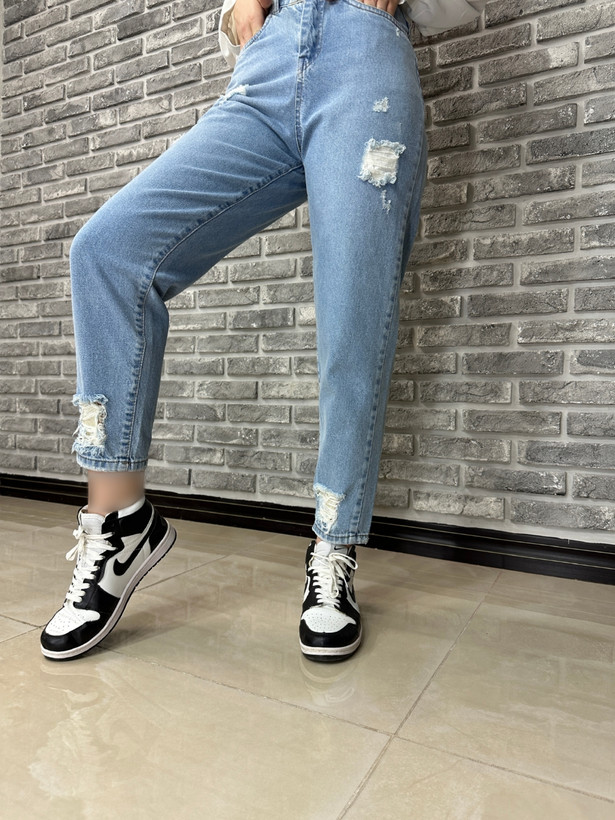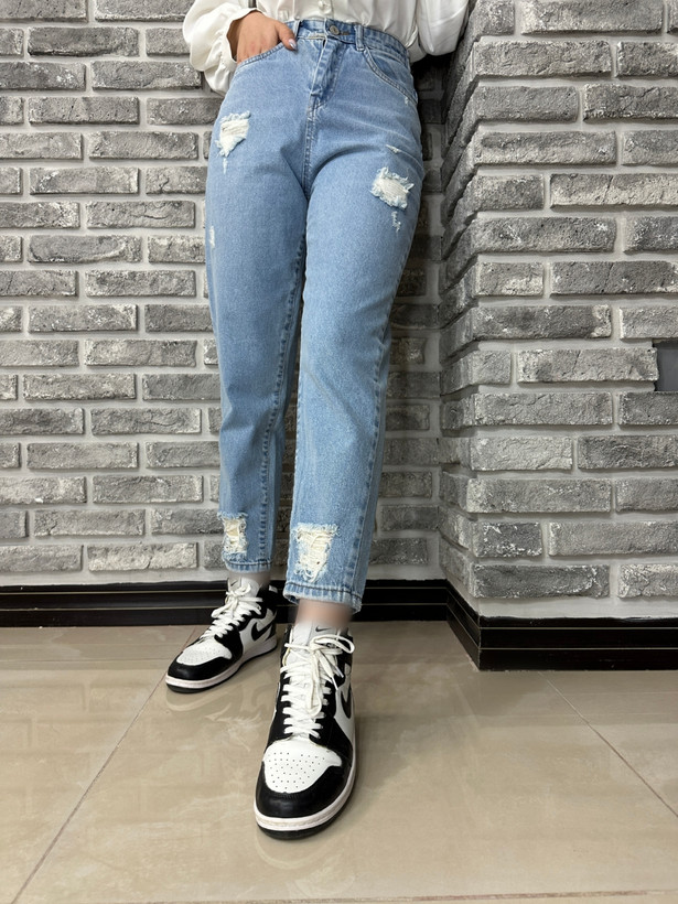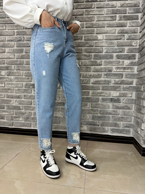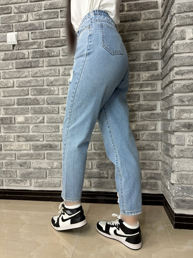 شلوار جین مام آبی روشن پشت کش دمپا زاپ کد 10484