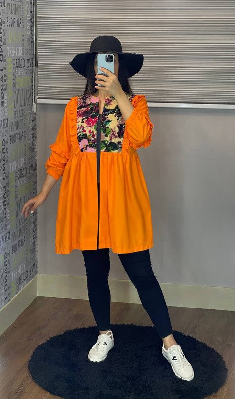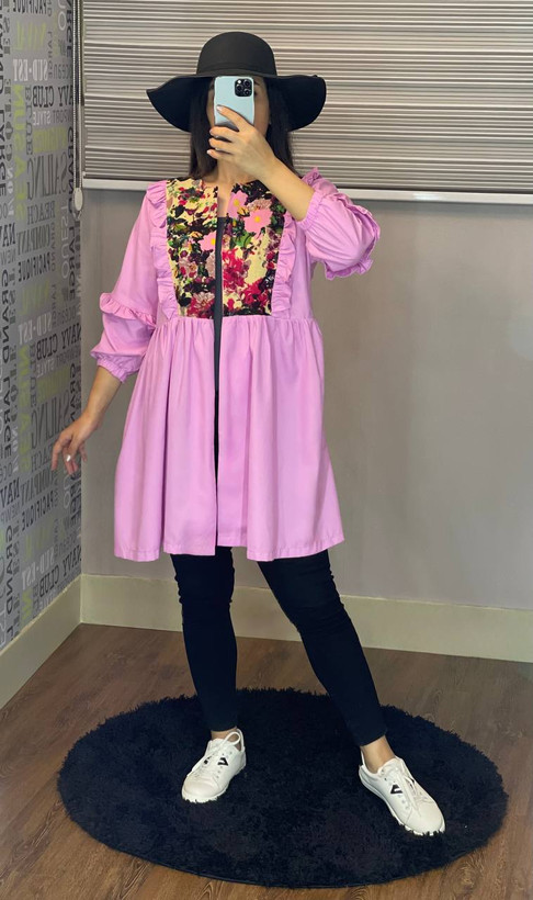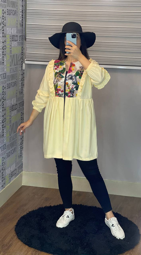 مانتو عروسکی پیلی دار تیکه خور کد 017