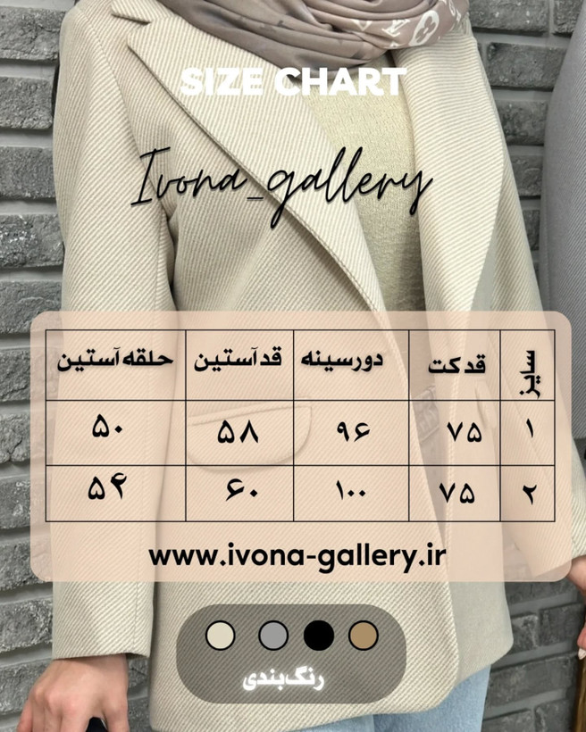 برای خرید راحت تر شما گالري ايونا اندازه ي كلي كارو اسلاید آخر قرار داده لطفا با اندازه هاي خودتون مطابقت دهيد