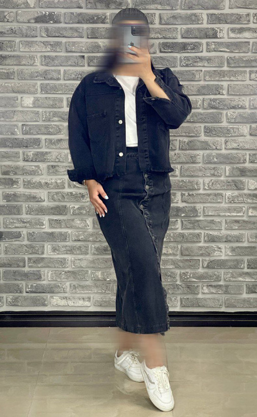 دامن جین ذغالی پارچه ترک