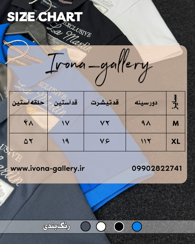 2 سایزبندی و 4 رنگ بندی داره که توی عکس ها همگی نوشته شده.