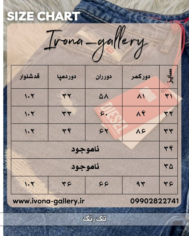 با استفاده از جدول سایز زیر میتونید سایز مناسب خودتون رو خریداری بفرمایید