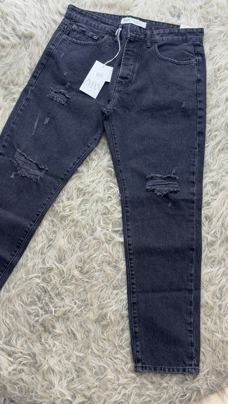 شلوار جین مردانه استریت زاپدار ذغالی تیره کد 10557