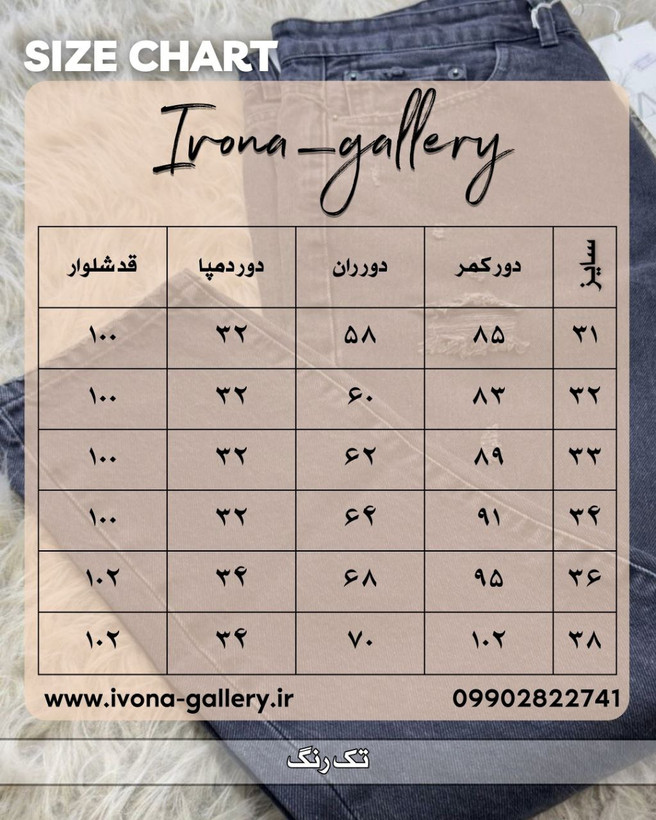 از جدول زیر میتونید سایز مناسب خودتون رو خریداری بفرمایید
