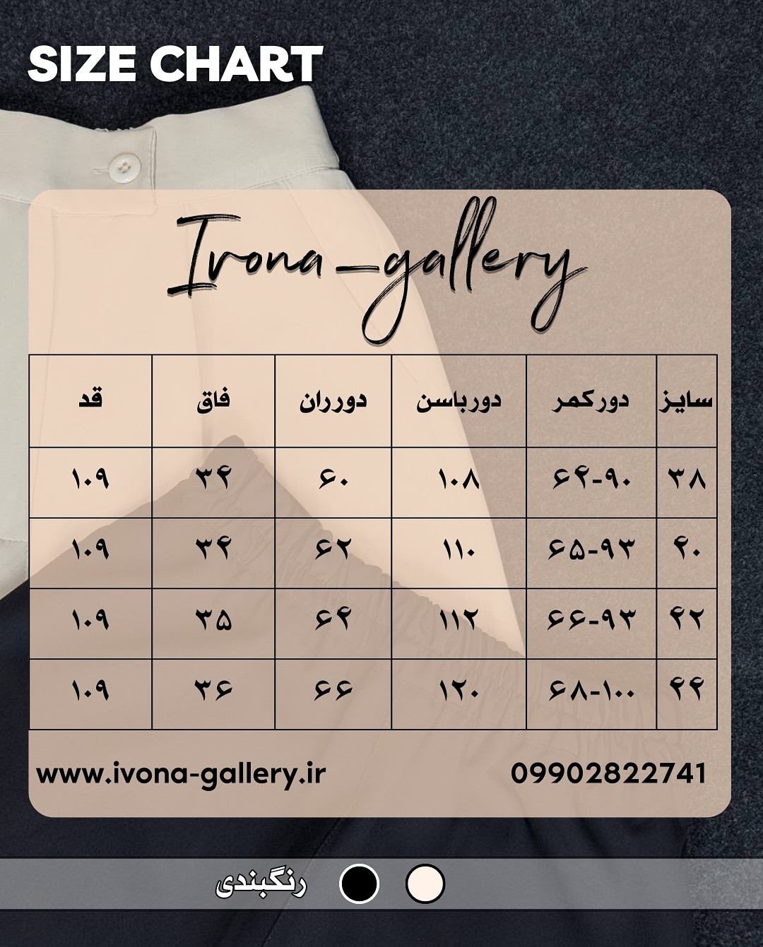 جدول سایزبندی اسلاید آخر رنگبندي گ مطابق تصاوير
