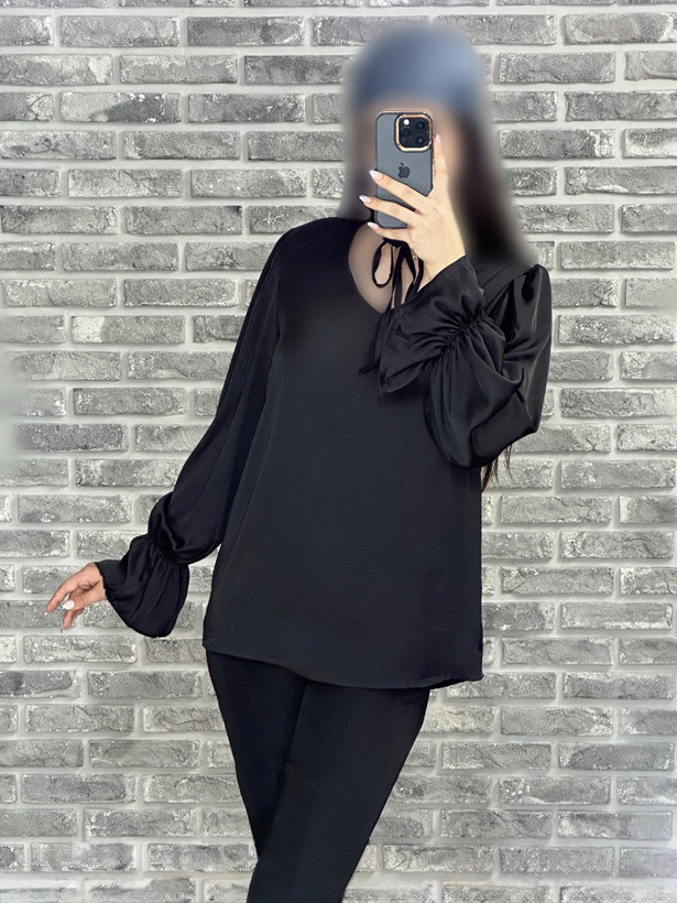 شوميز ساتن يقه گره ای مجلسی / اسپورت سایز بندي 4 سايز S/M/L/Xl قد شوميز 67 رنگبندي: 3 رنگ سفيد/مشكي/رزگلد