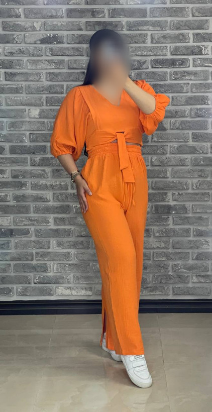 ‏‎‏‎ست کراپ شلوار بگ چاکدار کد 10352