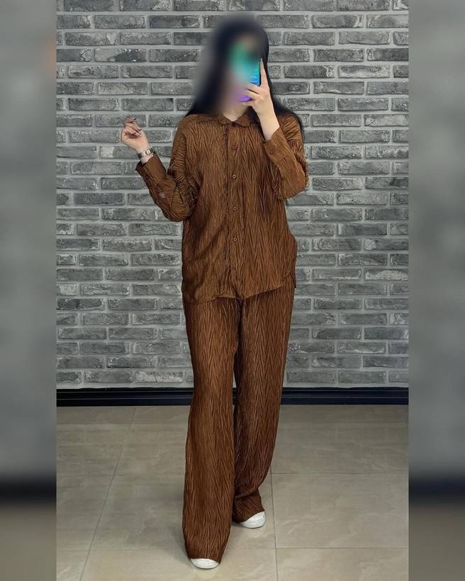 شومیز شلوار نیم بگ جنس پیلیسه ژاکارد کد 10329