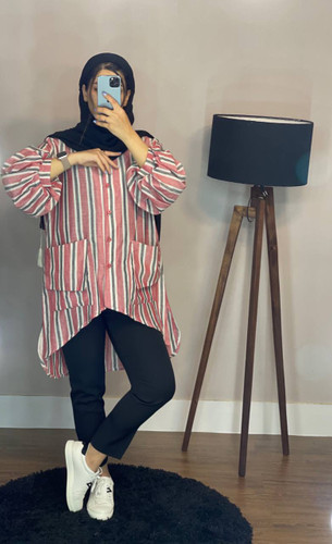 مانتو عروسکی پیلی دار تیکه خور کد 017
