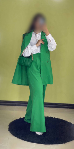 ست ٣تیکه لینن،کت جیبدار،شومیز بیسیک سفید،شلوار نیم بگ